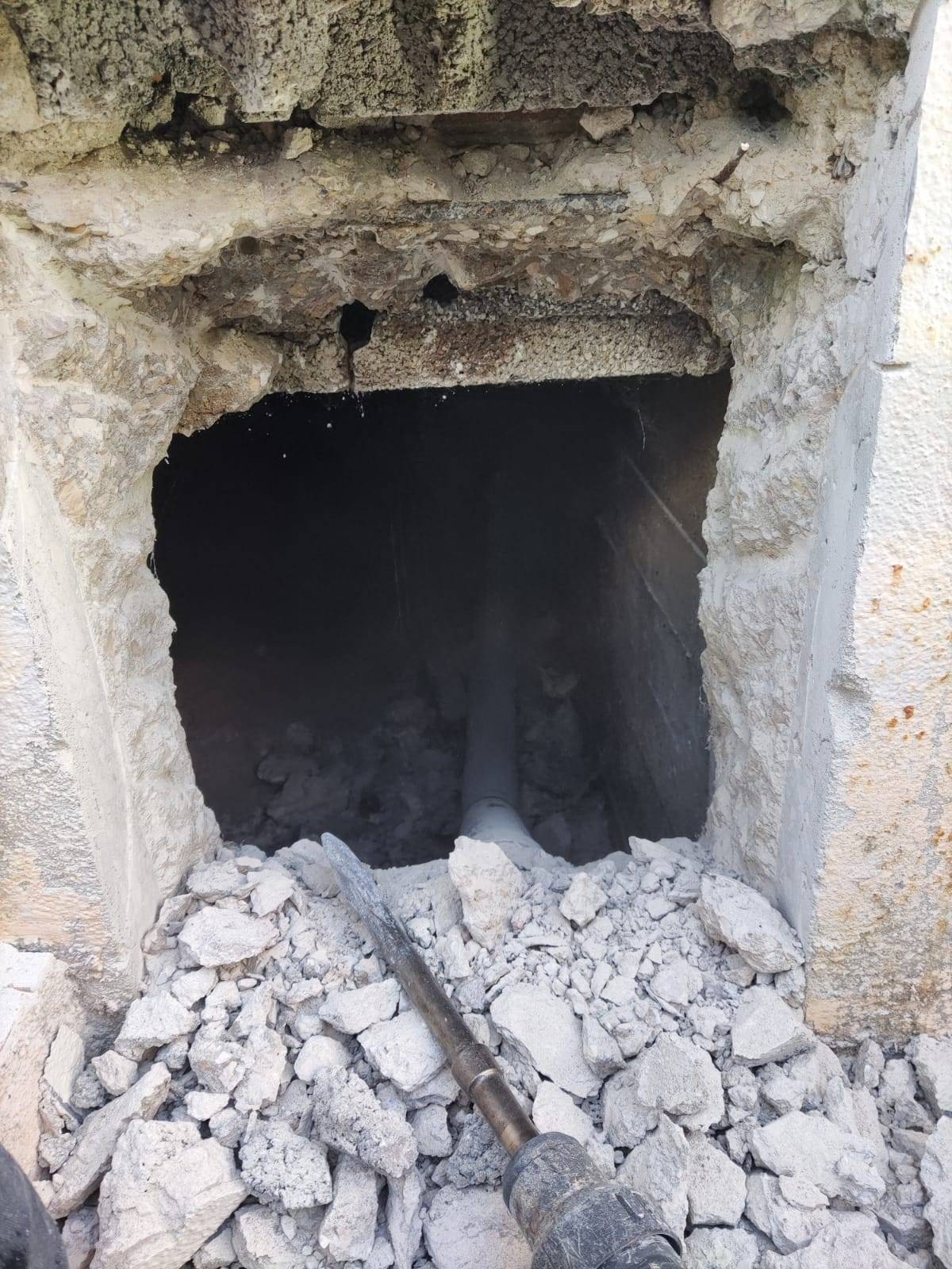 Notre équipe de maçon a réalisé la découpe du voile béton et l'installation d'un grillage de protection.